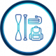 Fiberglas Paddel (3-teilig), Rucksack, Doppelhubpumpe, Leash, US-Finne, Repairkit