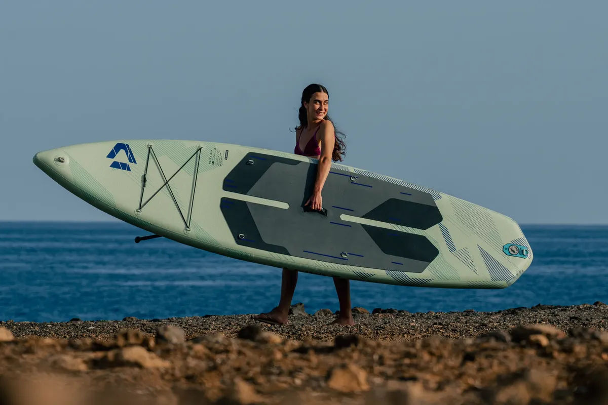 Dank der innovativen Woven Drop-Stitch Technologie ist das Board leichter, steifer und langlebiger als herkömmliche Modelle. Die eng verwobenen Polyesterfasern im Inneren reduzieren das Gewicht und erhöhen gleichzeitig die Druckfestigkeit – für eine noch effizientere Kraftübertragung und ein direkteres Fahrgefühl.