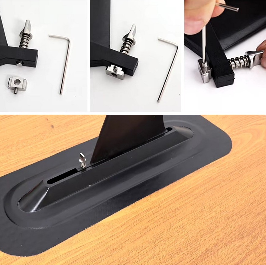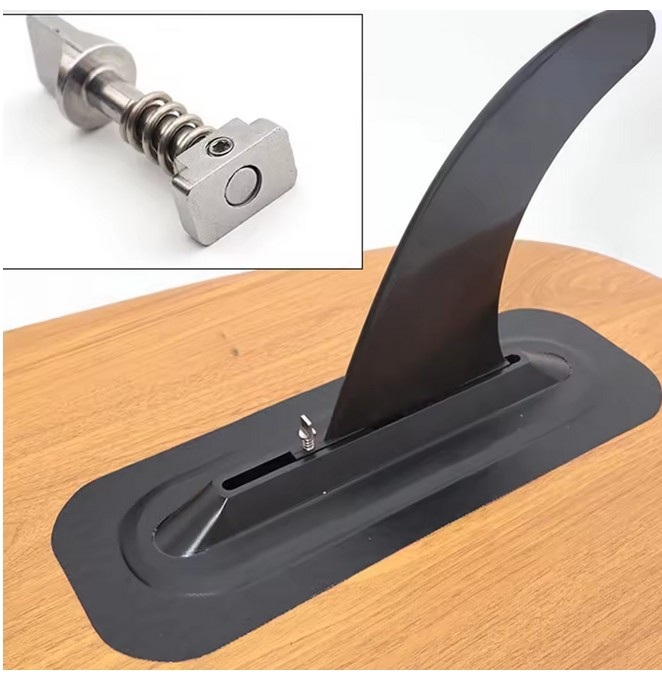 Entdecken Sie das innovative Schraubensystem für US-Finnen mit integrierter Feder und T-Nutenstein. Einfaches Herunterdrücken, 90°-Drehung und Ihre Finne sitzt bombenfest – schnell, werkzeuglos und sicher. Perfekt optimiert für eine sekundenschnelle Montage und stabilen Halt.
