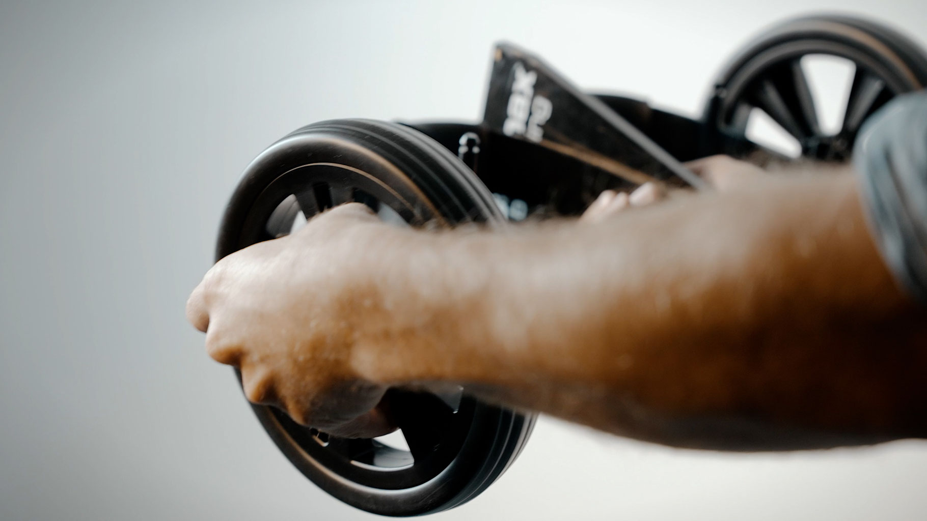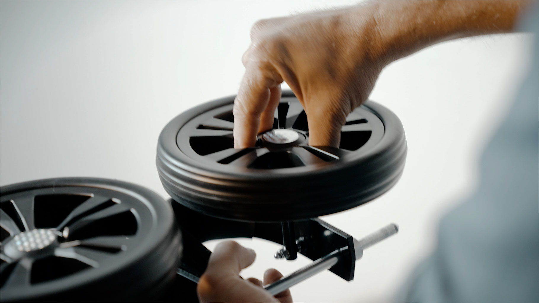 • Kompaktes Packmaß: Der Wagen lässt sich extrem flach zusammenlegen und bequem auf dem Board verstauen.